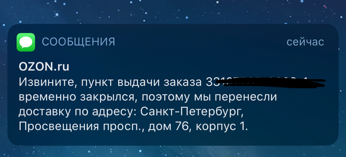 Озон вновь решил перенести доставку из Москвы, благо в этот раз хоть поближе