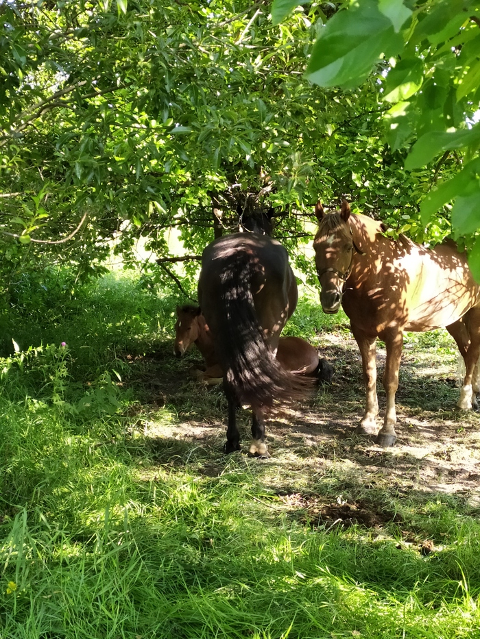 Я держал всех своих под контролем, пока мы ходили на прогулки. А потом осенью нас с мамой переселили жить со всеми, и тогда почему-то взрослые лошади забыли, что я вообще-то большой и сильный, и настояли на том, что большие и сильные тут они, сказали, что мне надо знать своё место. Пришлось согласится. Но время всех расставит по местам.
