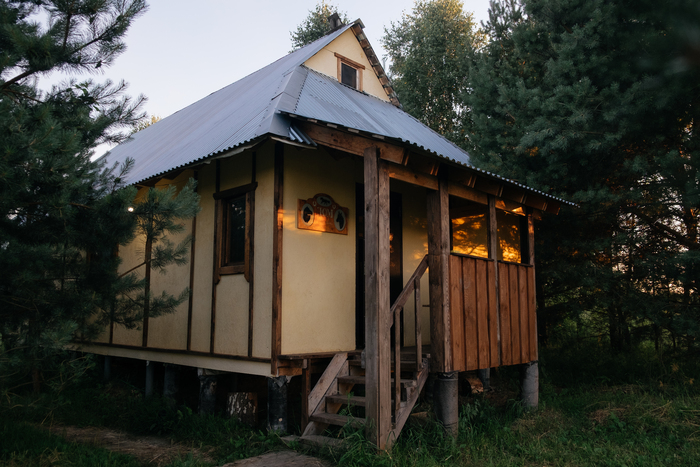 Более просторный и светлый, выше по уровню комфорта, но рассчитан чуть на меньшее количество человек. Совсем идеально для личного пространства - вчетвером/впятером, но можно и компанией до 8 человек. Внутри витает запах дерева, а если протопить баню и отправиться туда с вениками, то и запах берёзовых листьев.