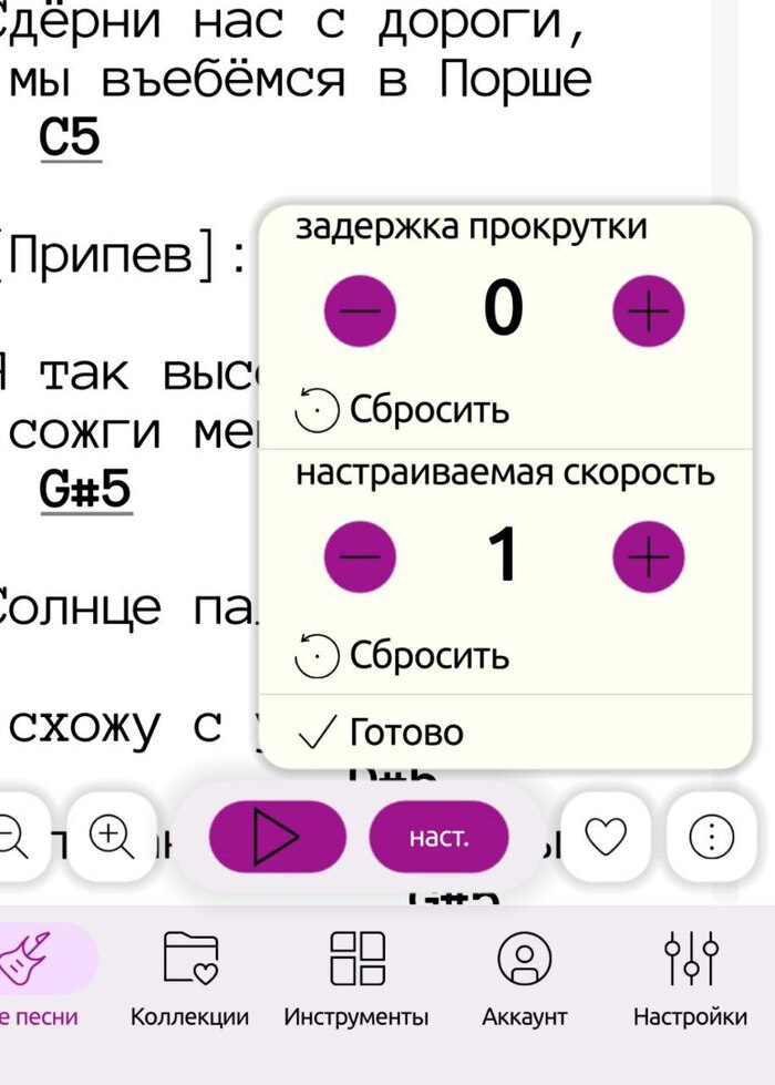 Как говорилось в предыдущем пункте, вы можете загрузить и опубликовать собственную песню. На данный момент, мы готовим для вас крутой редактор. Это будет не просто текстовый редактор, а инструмент через который можно будет удобно создавать табулатуры и подборы⚡