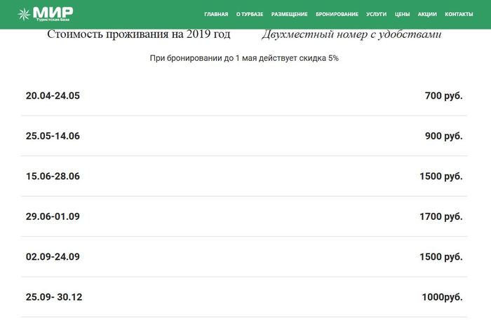 Расчет приблизительный конечно, так как билеты на чартерные рейсы дешевле. Но эту разницу скорее всего положат себе в карман туроператор или авиаперевозчик. Поэтому заходим проверить на букинг (и, оп - сюрприз... букинг почему-то не размещает Крымские турбазы), но не отчаиваемся! Гуглим официальный сайт и понимаем, что с ценой примерно угадали: