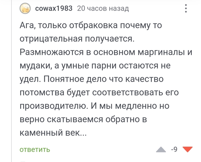 Можно было бы на секунду задуматься, что раз человек сидит на пикабу много лет, постит, коментит, но рейтинг все равно низкий, то возможно он несет хуйню которую минусят.