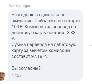 Почти сразу была написана жалоба на действия курьера в банк. Ну, вы знаете это "мы разберемся, всех накажем и покараем". Отдельная песня была при попытке закрыть счет тмобайла. Необходимо было обратно перевести закинутые 100 рублей со счета тмобайл на счет карты. Я не удержался и заскринил ответ от тех. поддержки.