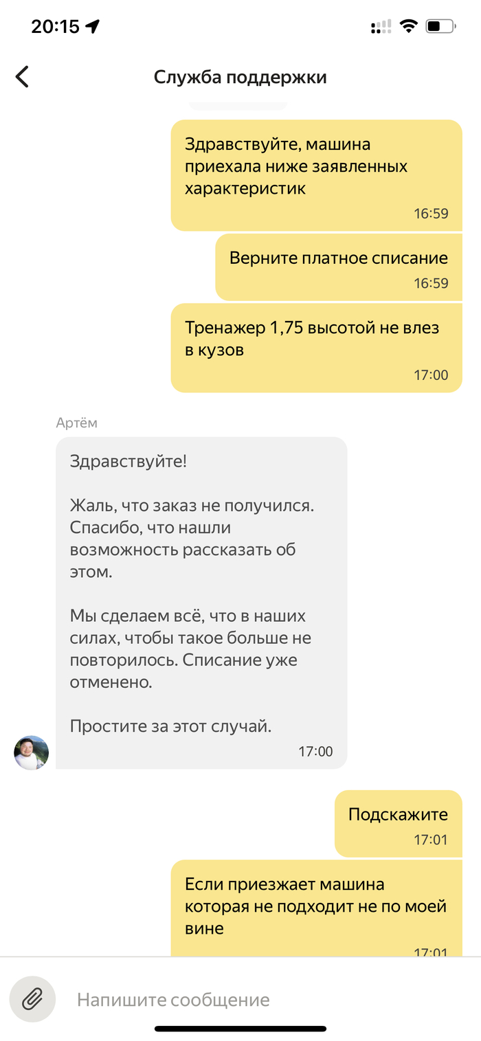 Я: Почему мне об этом не сообщил? Я уже подъехал на Машине. Потратил время бензин.