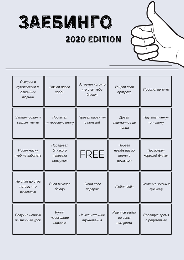 mzTomato Заебинго и проебинго 2020 5 лет назад Показать полностью 2 [моё] Бинго Итоги года Шаблон Длиннопост Мат Ещё 0