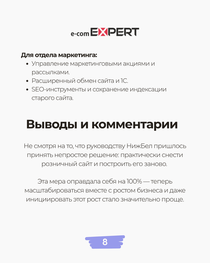 За 18 лет в e-commerce, 12 из которых мы, e-comEXPERT, сфокусированы на автомобильном сегменте, мы видим на практике: инвестиции в системную автоматизацию формируют стратегическое преимущество и отделяют лидеров отрасли от остальных участников.