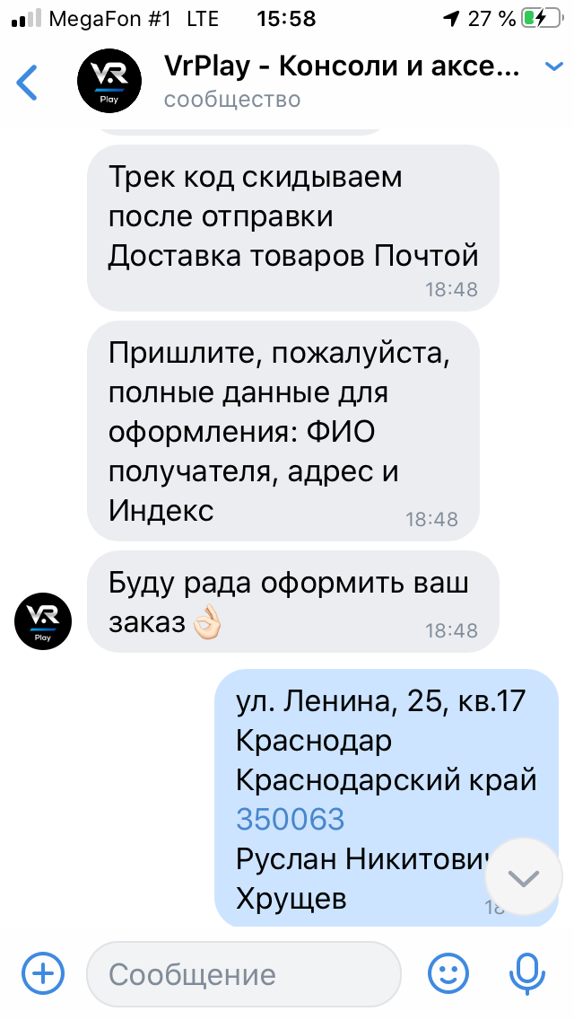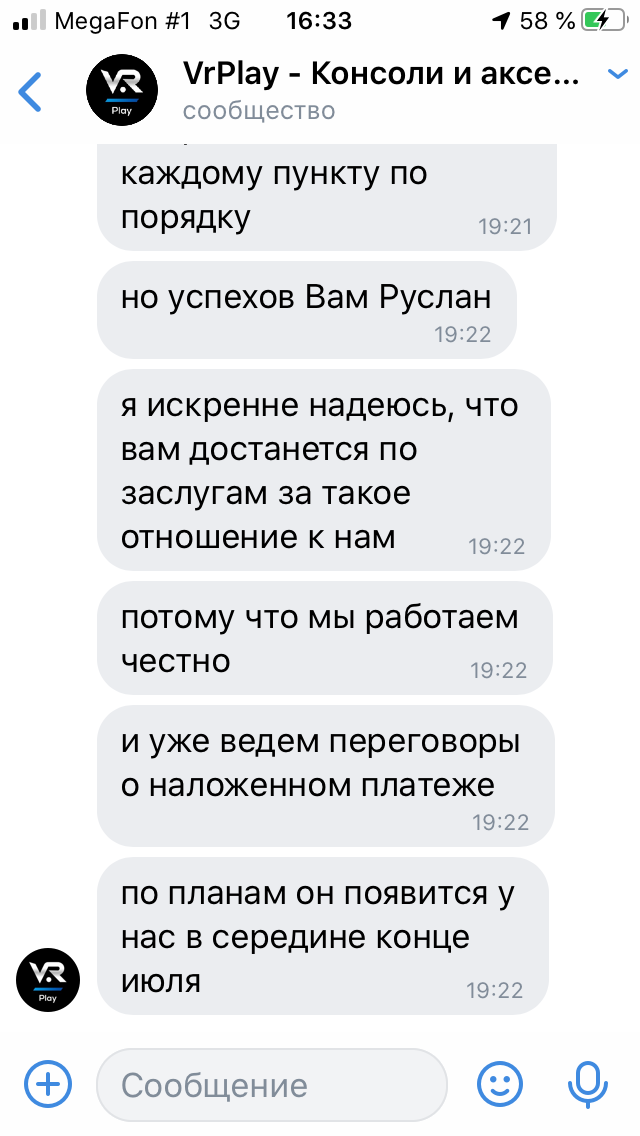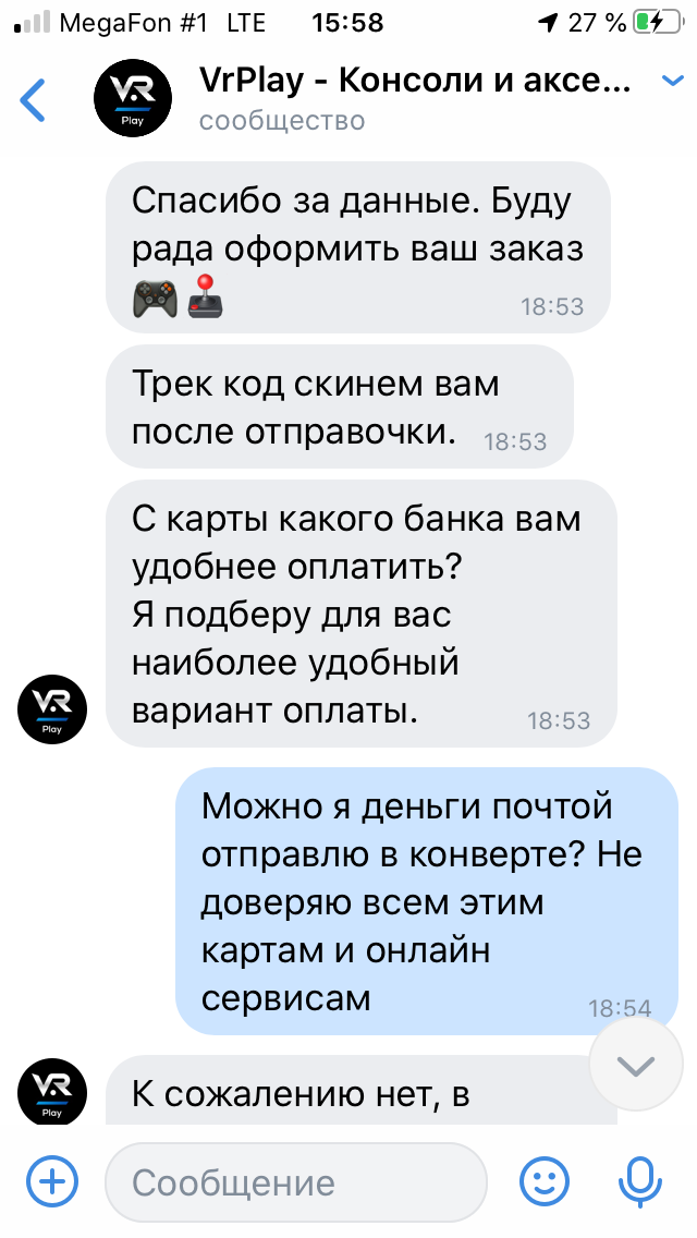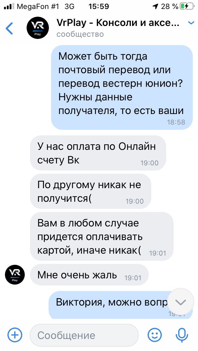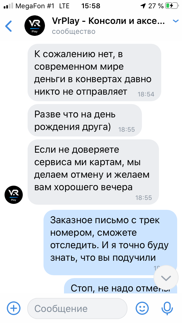 попутно в интернете пытаюсь найти инфу на эту группу и магазин(https://vrcentr.ru/) удается узнать, что сайт создан в начале июня 2020 г. Подозрения становятся еще сильнее, что меня хотят обмануть.
