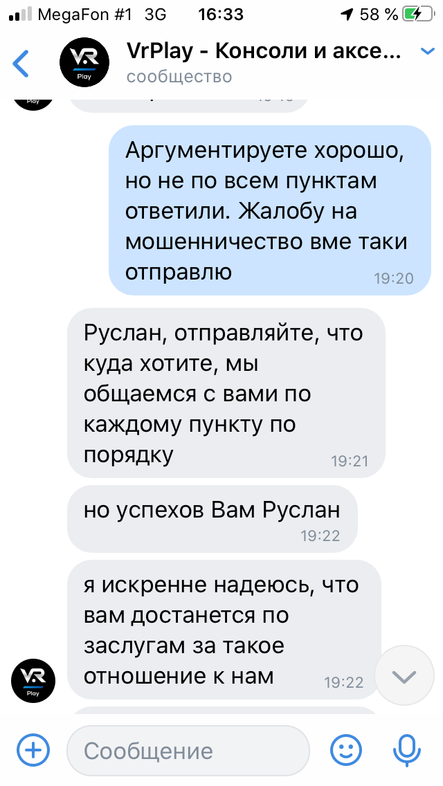 На что я получаю различные аргументы и появляются сомнения, что я был не прав и упустил халяву. Отправляю жалобу на мошенничество через функцию ВК.