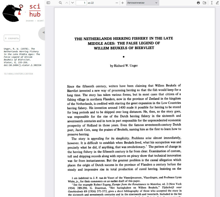 Для читающих по-английски. В любой мало-мальски серьезной дискуссии вы рано или поздно наткнетесь на статью под замком из какого-нибудь научного журнала. Sci-Hub позволяет ее тут же прочитать, просто введя ее уникальный номер DOI, который обычно где-то там же в описании статьи приводится.