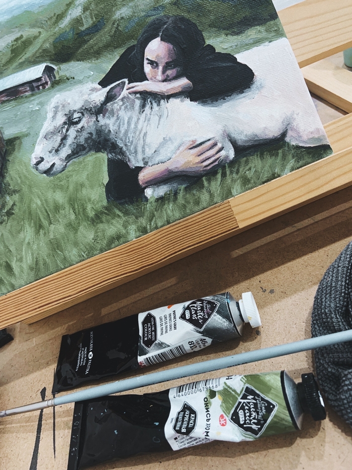 Когда я прихожу в студию, я могу смело несколько часов посвятить холсту и краскам. Могу включить громко музыку. Могу убрать звук на телефоне и направить все свое внимание в творчество. Вау.