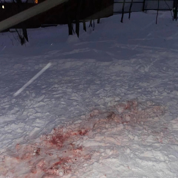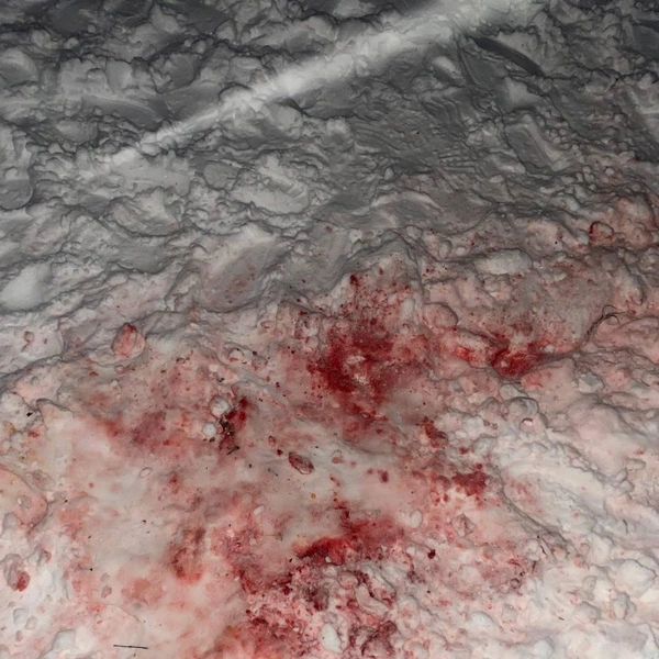 Забравшись по сугробам на полянку, меж деревьев в темноте на снегу я вдруг увидела темное кровавое пятно.