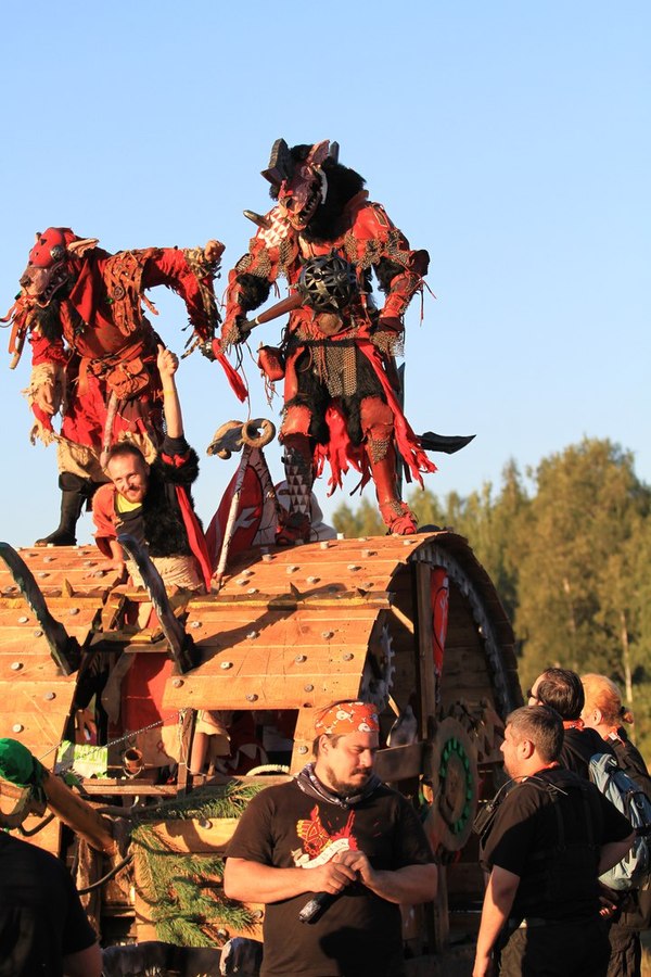 Сначала, наверное, нужно рассказать что и к чему. Каждый год в нашей стране проводится замечательная игра-фестиваль Вархаммер по одноименной настольной игре. В этом году фестиваль собрал около полутора тысяч человек из нашей страны и стран ближнего зарубежья. По праву многие считают вархамер главной ролевой инрой сезона и дело тут даже не в колличестве игроков приезжающих на фестиваль, а в высочайшем качестве их костюмов, многие из них делаются годами и с каждым разом становятся все лучше, все продуманней. В этом году не фестиваль вывезли три полноразмерные модели техники (Имперский танк, Думвиль Скавенов и Дережабль Гномов). К сожалению я не смогу показать все костюмы в этом небольшом посте, но я постарался выбрать лучшее. Кому же не хватит, в официальной группе фестиваля уже сейчас выложено несколько тысяч фоток, через пару дней там их будут десятки тысяч. Пожалуй хватит слов, давайте вместе посмотрим на фотографии с фестиваля.