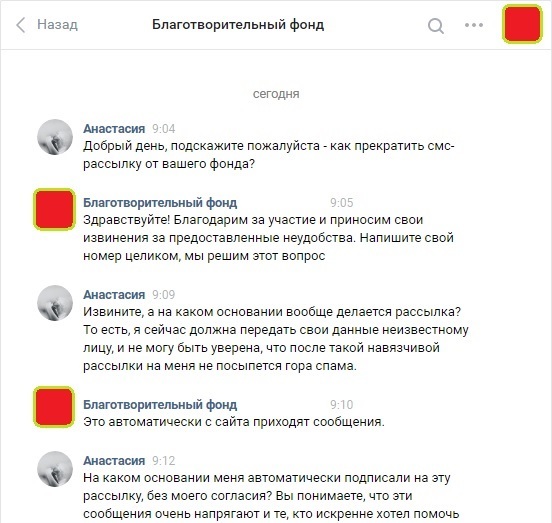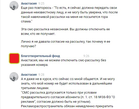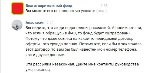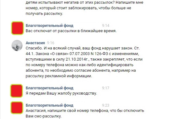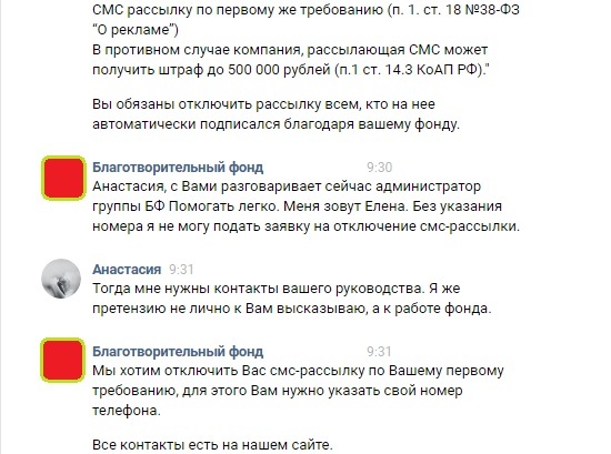 Гениальное решение от Елены - она дает мне ссылку на тему в группе фонда, где люди жалуются на рассылку и скидывают свой номер телефона, дабы их отключили...