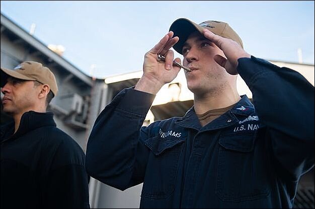 Но нигде я не нашёл снимков с отдачей чести в этот момент, за исключением американского флота: