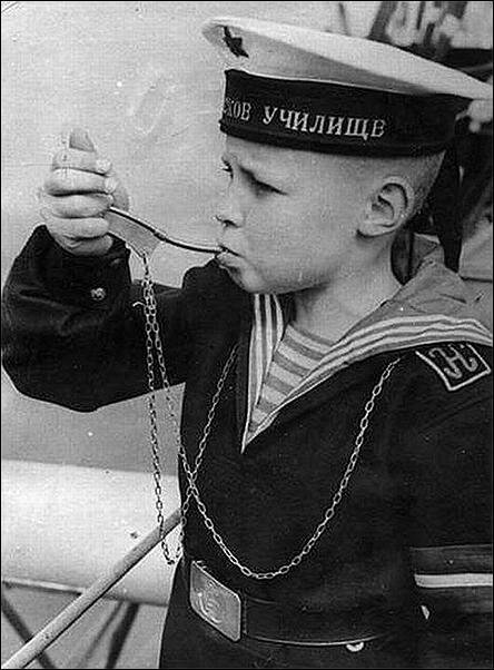 А ещё этот снимок привлёк внимание молодым обликом матросов на нём, раньше всё гораздо более зрелые мужики в объектив попадали, а также отсутствием боевых номеров на робах.