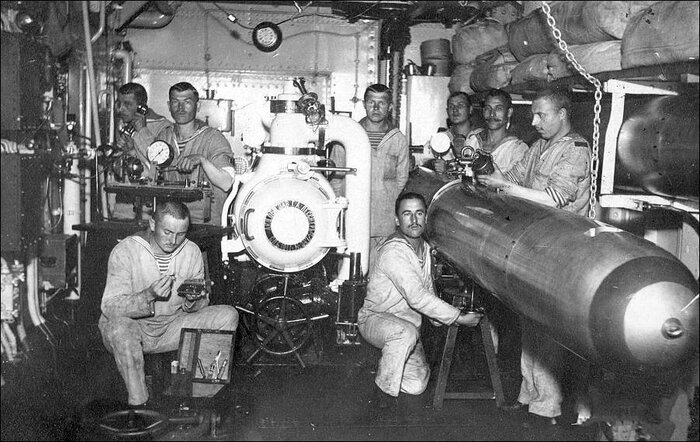 Обычно внутри лодки запасные торпеды были уложены в том же отсеке, где находились и торпедные аппараты: