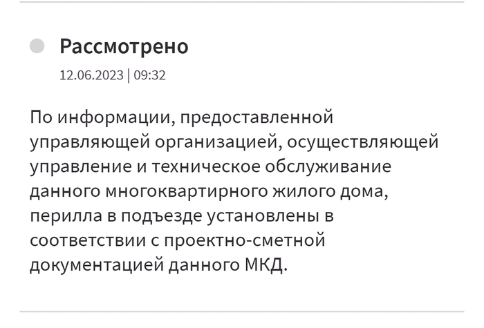 Хочу добиться нормальных перил, но управляющая компания со мной не согласна. По их мнению, все отлично: