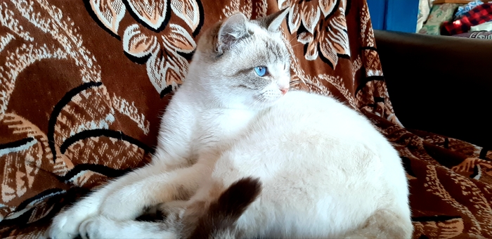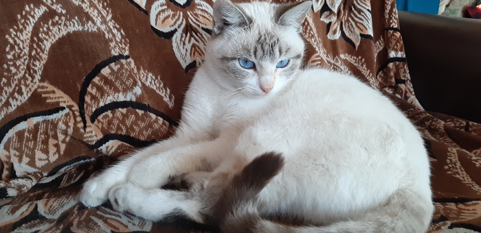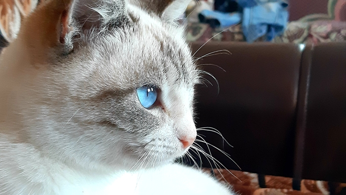 Причём позже она родила ещё нескольких котят, один из которых был полной ее копией. Кроме характера, т.к. характер у Снежи интересный. Она очень любит "поговорить", а когда кто-то ест за столом, эти глазищи просто вынуждают тебя с ней поделиться, но если не поделишься, в дело пойдут лапы, которые буквально могут отобрать еду прямо из рук ))