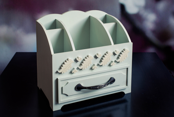 Единственное, пока большие проблемы с поиском клиентов. Хоть я и мониторила все сайты, выложила на многие ресурсы, пока купили только два органайзера, а остальные ждут своего звездного часа :( Реклама вконтакте тоже не принесла пока никаких плодов. Так что я буду очень благодарна, если вы поделитесь своими советами или опытом в этом деле!). Я получаю огромное удовольствие от творческого процесса, и жалко, если наши старания оказались напрасными( По ярмарке мастеров и контакту я поняла, что мало кто в Нижнем Новгороде этим занимается, однако пока люди не очень торопятся что-то покупать:( Уже начинаю подумывать, может мы что-то не так делаем, хотя просматривала чужие модели и магазины-наши ничуть не хуже, но конечно всегда есть куда расти. Пока делаем органайзеры из первосортной фанеры, но уже выпилили доски из дуба, и в будущем хотим делать еще и из качественной древесины.