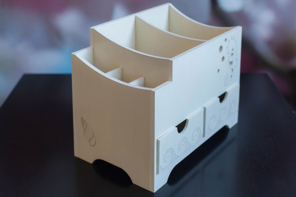 Пришлось изучать ооочень много материала, оочень много было недочетов вначале, мы с ним в этом деле были полные нубы) Долго искали хорошую краску и лак, долго подбирали кисточки, которые аккуратно бы красили (в итоге пришли к кисточкам для грунтовки, обычные строительные кисти нам не подошли). Наконец мы вроде учли все мелочи на "пробных" органайзерах, и начали делать с учетом всех наших проб и ошибок:)
