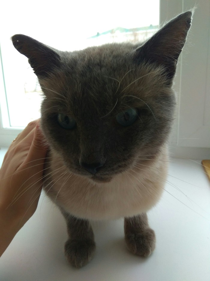 Приходит ко мне каждое утро, завтракает с моими кошками, умывается и уходит. По всей видимости соседский, но не могу вычислить чей.