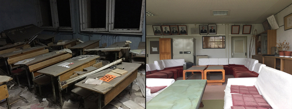 Школа в Припяти (слева) и в Фукусиме (справа)
