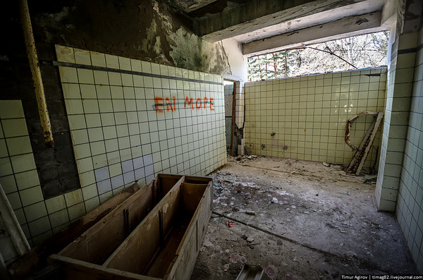 За пять дней нашего похода в Чернобыль волноваться, глядя на дозиметр, мне пришлось только дважды. Первый раз — когда мы решили срезать путь через лес и 30 минут пробирались по густым зарослям с фоном 2500 мкР/ч. Второй — когда я спускался в печально известный подвал медсанчасти №126 в Припяти, в одной из комнат которого до сих пор хранятся вещи пожарных, тушивших блок 26 апреля 1986 года. Но это два частных случая, все остальное время фон был таким же, как и в Киеве — 10-15 мкР/ч. Основная причина этому — время. Стронций и цезий — самые распространенные радиоактивные изотопы, которыми загрязнена зона, — имеют период полураспада 30 лет. Это значит, что активность этих элементов со времени аварии уже уменьшилась вдвое.