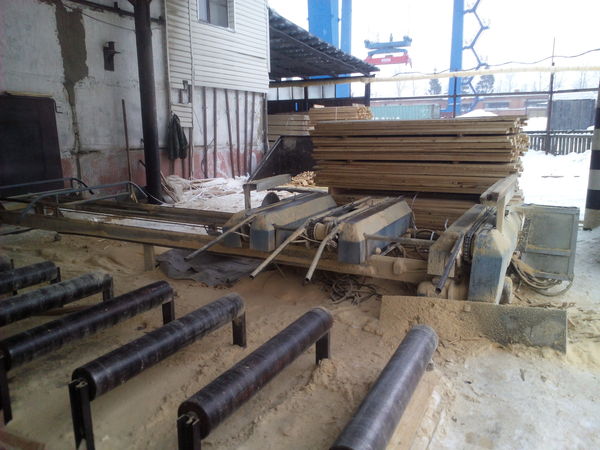 По системе рольгангов торцованная доска попадает внутрь цеха. Следующая операция – продольное разделение заготовки. Осуществляется она на таком станке:
