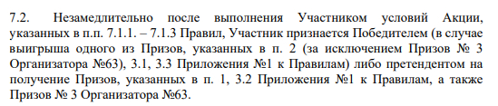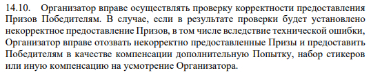 т.е я как бы победитель автоматически (условия акции п.п 7.1.1-7.1.3 это зайти на сайт, получить попытку и крутануть барабан и приз не попадает под особую категорию), но нет не все так просто