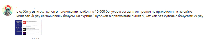 Ну думаю надо поучаствовать может что-то прилетит интересное и прилетает мне аж с третьей попытки купон на 10 000 бонусов vk pay, я такой обрадовался щас куплю себе какую ни будь бытовую технику в пол цены, но нет...
