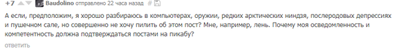 Поначалу я подумал что этот человек реально давно тут, и выполняет очень серьезную работу, но посмотрев профиль...