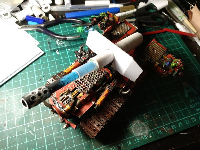 Буквально перед грунтовкой. Руки съёмные, у правой оружие на магните, планирую сделать и остальные варианты. Биг шуты тоже съёмные. Гретчин с люком на крыше на магните, на его место планируется втыкать кфф, мега чарджу или рокит бомбы(при этом убирая биг шуты).
