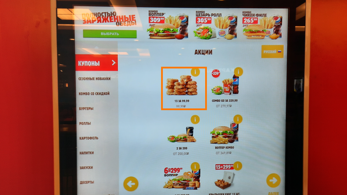Это, к слову, о качестве продукта и их поддержке. А теперь, еще о некоторых моментах. Недавно решили с женой взять наггетсов и все такое. Чтобы не стоять в очереди выбрали через терминал,