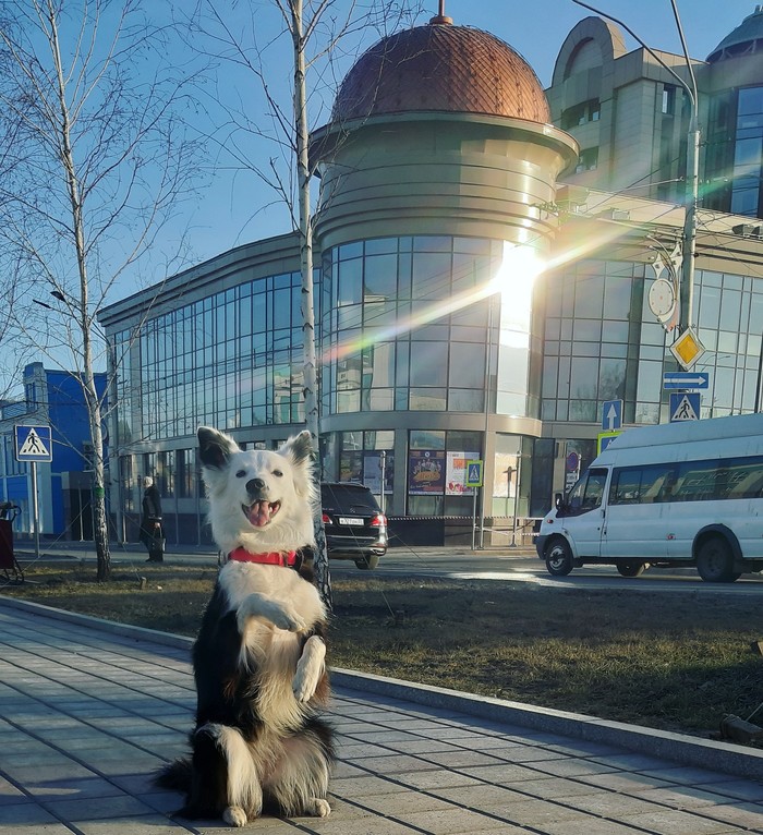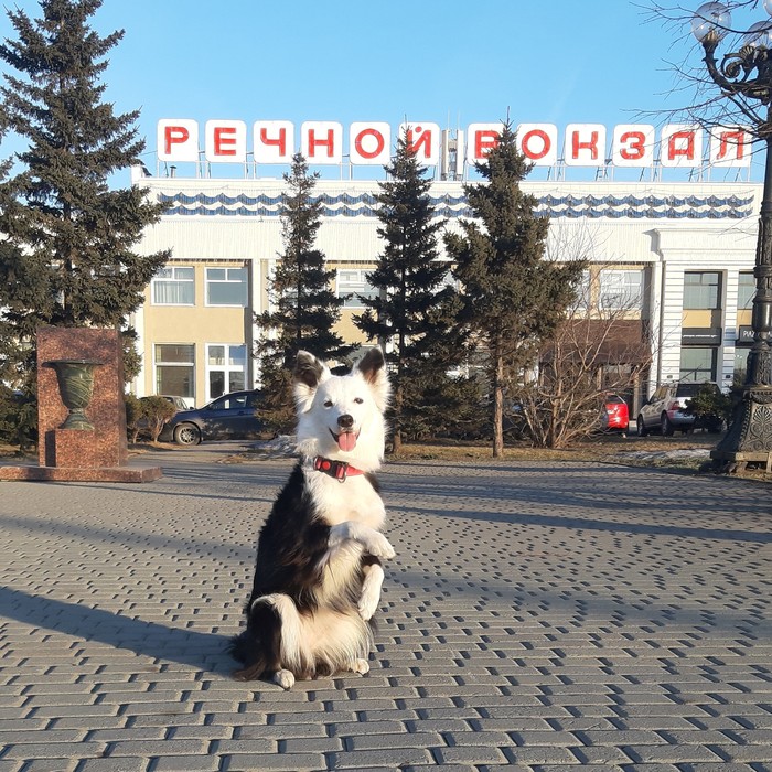 Собака на фотографиях - бордер колли по имени Виверна, или просто Виви. Ей сейчас 3 года и она очень хорошая девочка :) У неё есть свой аккаунт в инстаграм, в котором уже больше 2000 подписчиков, хотя изначально я создала его для себя, чтобы хранить там памятные фотографии и не забивать память телефона. Потом мне в голову пришла мысль сделать пару снимков на фоне узнаваемых городских мест и просто выложить их в профиль с хештегами. Неожиданно для меня, их увидел и разместил один довольно известный паблик, потом ещё один, и ещё и вот уже в целой куче известных барнаульских аккаунтов, даже в самом крупном, красуются фотографии моей собаки! Количество её друзей выросло до такой степени, что у нас ни одна полгулка не обходится без встречи с подписчиками или просто кем-то узнавшим её! Люди подходят, просят погладить или сфотографироваться, что собака с удовольствием делает, ведь она ну ооочень любит людей) Многие горожане даже называют её символом или талисманом нашего города, что, конечно, невероятно приятно)