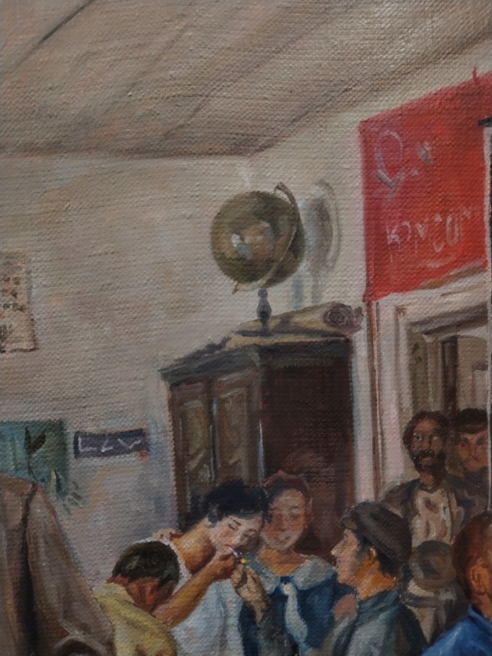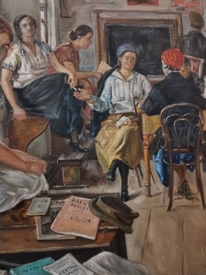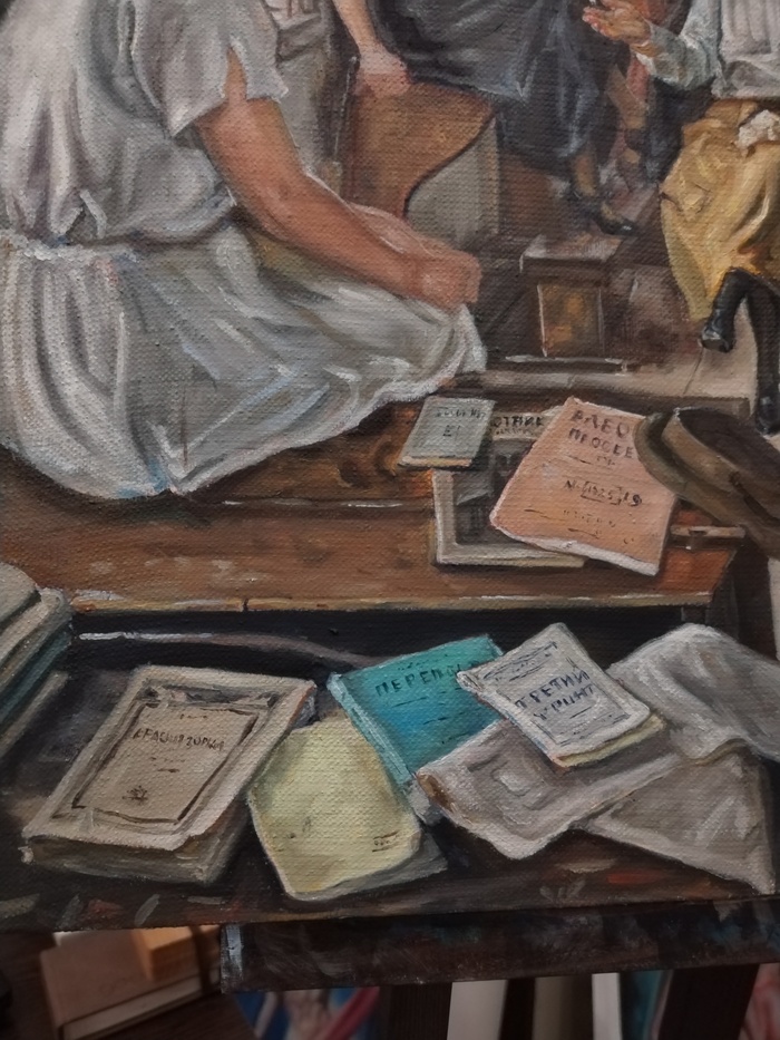 Сегодня уровень техники позволяет воплотить в жизнь почти любую картину. Например, эта копия картины Ефима Чепцова "Переподготовка учителей" стала подарком, а оригинал висит в Новой Третьяковке.