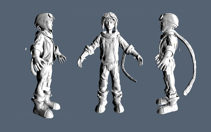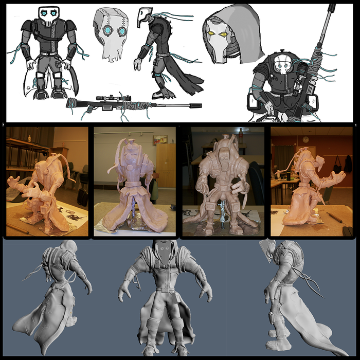 В группе оказался только один 2Д художник, один аниматор, и один 3Д художник (ваш покорный слуга). Спустя одну неделю, к нам присоединился еще один 3Д художник, который сдавал долги по предыдущему предмету. В этот раз настал мой черед «блистать», а точнее брать на себя более тяжёлую работу: Я занялся главным героем. Должен заметить, что мне хотелось опять поработать в 3D Coat поэтому я был рад новой возможности, более того концепт-арт нашего 2Д художника меня очень мотивировал.