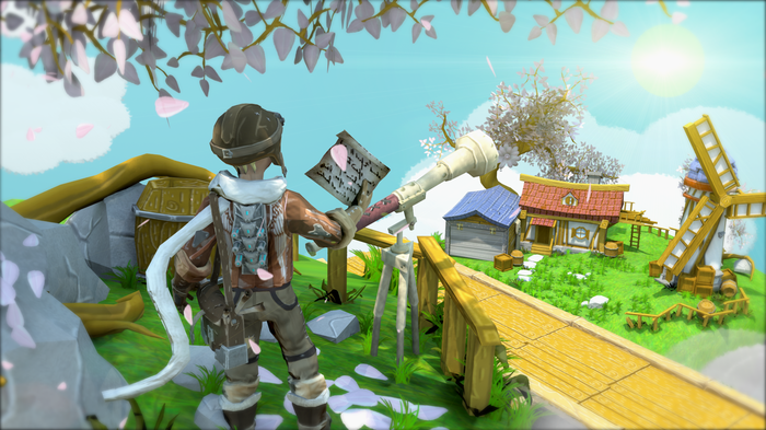 У нас было четыре уровня: каменный лес, руины города( вдохновлённые Мачу-Пикчу), храм колоколов и последний уровень – древо жизни. Герой проходил эти уровни, решал пазлы и на вершине дерева окунался в родник из света. Этот родник менял текстуру главного героя, на боле светлую, и у героя начинали светиться руки. По придуманному лору, герой должен находить на своем пути много таких родников, становясь более светлым на своем пути. Символизм, однако!