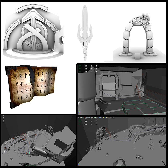 «3Дшников» было двое, я и еще один парень. Этот парень был одним из тех, что на голову выше нас, хорошо, что по характеру он был славный малый. Чтобы вы понимали разницу, этот парень уже давно спокойно работал в Zbrush, что, разумеется, выше нашего текущего студенческого уровня. Так что мы быстро решили – он занимается персонажами: «Главный Герой», один NPC и Волк Фенрир. Я же, по предоставленному дизайну от наших 2Д художников, займусь объектами и окружением. Текстурами к объектам займутся опять же наши 2Д художники,… ибо нефиг отлынивать!
