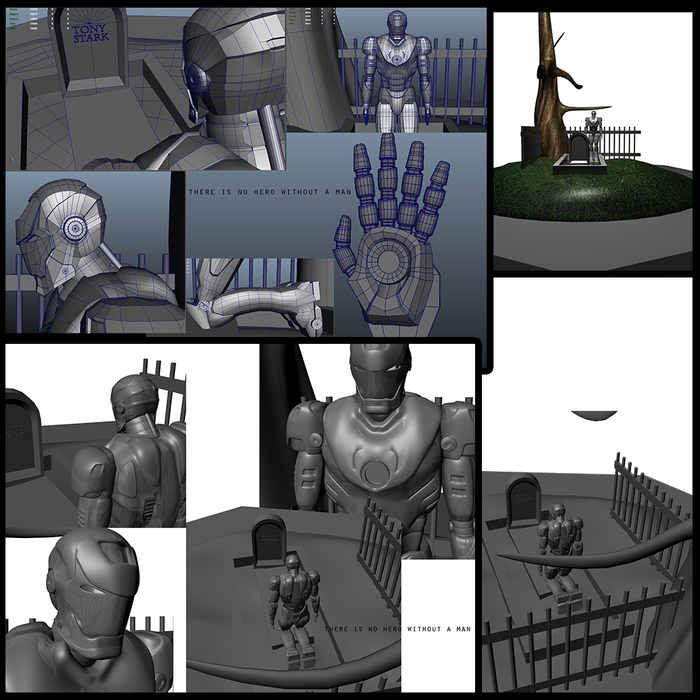 Четвертая и последняя тема называлась «Character in Environment» и нашей задачей было нарисовать персонажа вселенной Марвел. Не трудно догадаться, что почти все выбрали Железного человека, и я в том числе. Мой выбор был мотивирован тем, что у персонажа нет лица (моделировать лицо очень тяжело), а так же, его тело можно разобрать по частям и моделировать отдельно, пользуясь большим количеством изображений, которые есть в сети.Четвертая и последняя тема называлась «Character in Environment» и нашей задачей было нарисовать персонажа вселенной Марвел. Не трудно догадаться, что почти все выбрали Железного человека, и я в том числе. Мой выбор был мотивирован тем, что у персонажа нет лица (моделировать лицо очень тяжело), а так же, его тело можно разобрать по частям и моделировать отдельно, пользуясь большим количеством изображений, которые есть в сети.