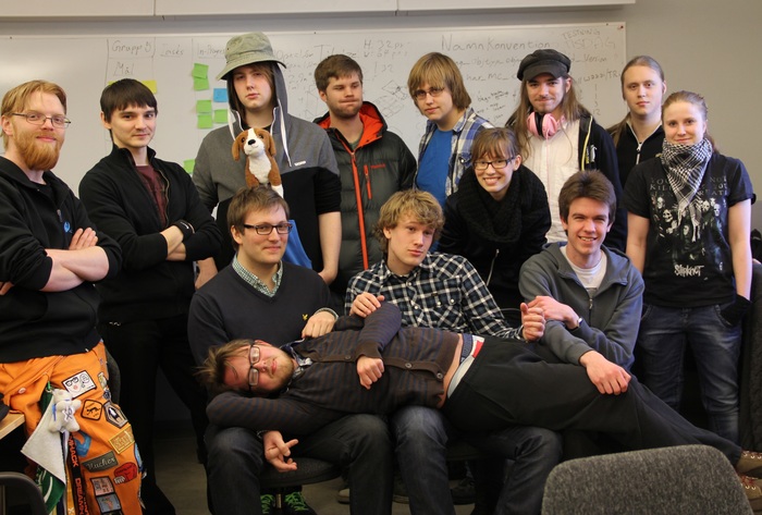Так или иначе, проект был сдан, индивидуальные задания и тексты сданы, и все со счастливыми, но уставшими лицами отправились готовиться к следующему предмету, но перед этим было групповое фото на память :) Сможете угадать славянское лицо среди гордых нордов?