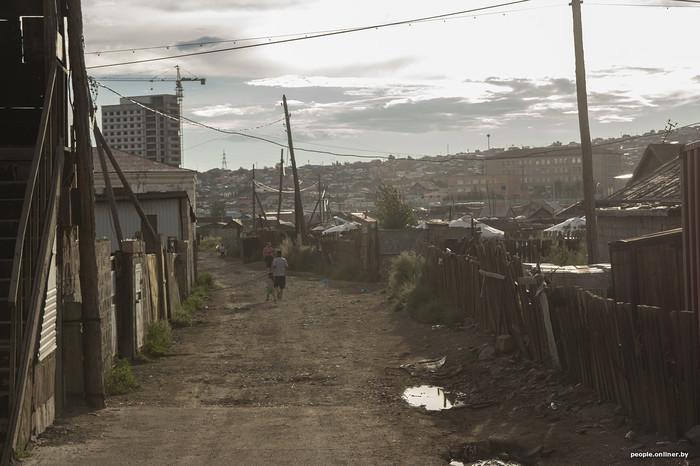 Тротуар закончился спустя четыре квартала от главного проспекта. Большое количество заправок, автосервисов и шиномонтажек свидетельствовало о немалом проценте автомобилей на душу населения. У монгола может быть плохой покосившийся дом или не быть оного вообще, но наличие автомобиля обязательно. Причина все та же — устоявшаяся веками кочевая ментальность. Наверное, каждая четвертая машина в городе — это праворульная Toyota Prius. Как-то один водитель поделился местной шуткой, презрительно обгоняя японский хетчбэк на трассе: «Овец сдал — „Приус“ поднял».