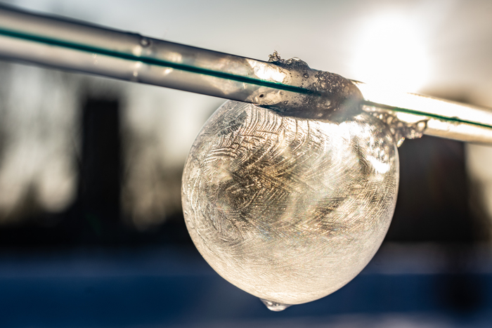 Соблазнилась гайдами из интернета и решила попробовать замёрзшие пузыри поснимать. Первый блин. )) В интернете они красиво замерзают, лёжа на снегу, а мои при контакте со снегом лопались и скукоживались в непонятную зюзю. Один пузырь (2 фото), правда, эффектно лопнул пополам прямо на трубочке. Надо будет ещё с растворами поэкспериментировать.