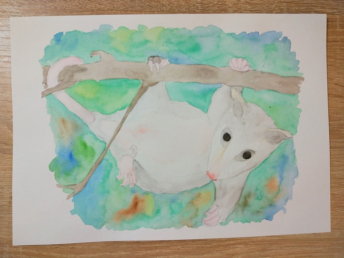 В школьные годы, в художке, куда я поступила уже после опоссума, я терпеть не могла акварель - растекается, не исправить ничего толком, одно мучение!