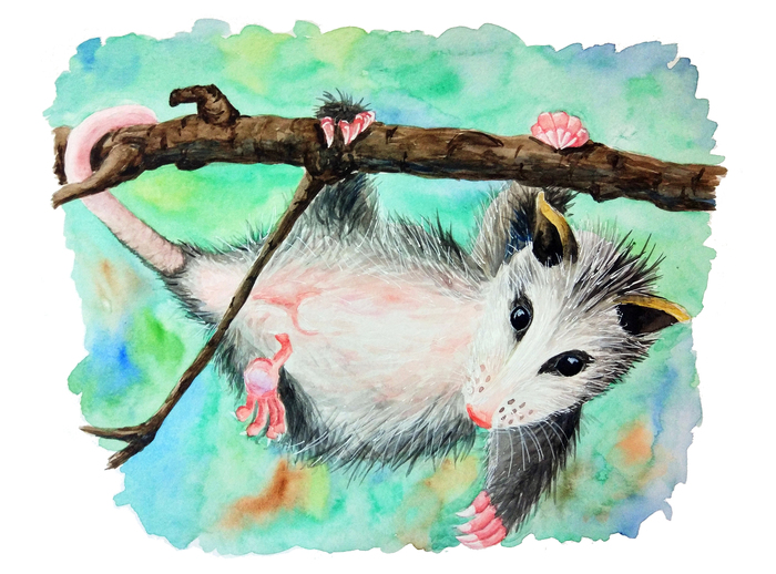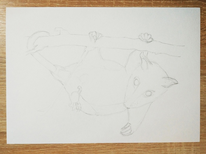 Давным-давно, лет этак в 8-9, я нарисовала опоссума по фотографии. Спустя примерно 25 лет наткнулась на этот рисунок и решила попробовать найти оригинал и повторить. Для ЛЛ первая иллюстрация, для остальных расскажу дальше.