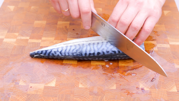Разрезаем мясо на стейки по ребрам. Должно получиться, что в середине каждого стейка у нас получится по одному ребру. Если вы не умеете разделывать мясо или у вас нет желания заниматься этим, то просто попросите мясника разделать корейку на стейки при покупке.