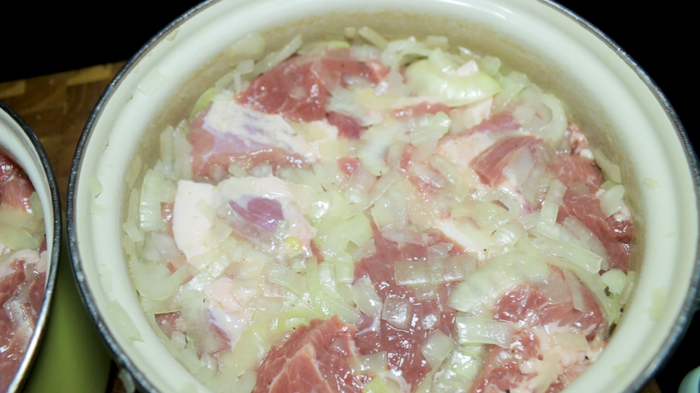 Выкладываем мясо с луком слоями в ёмкость для маринования. Первым слоем идёт лук, дальше просто чередуем слои. Надо, чтобы каждый кусок мяса прилегал к луку обеими сторонами. Оставляем шашлык мариноваться. Минимальное время для маринования данного шашлыка составляет 4 часа, однако будет намного лучше, если вы поступите как я и оставите его мариноваться на ночь.