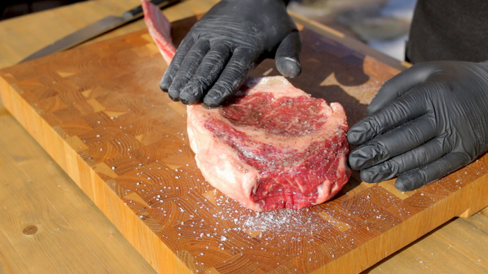 Переходим к стейкам я купил их замороженными, разморозил за ночь на нижней полке холодильника, промыл и просушил.