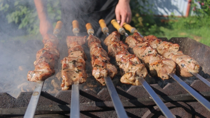 Стейки из форели на ольховой дощечке на гриле