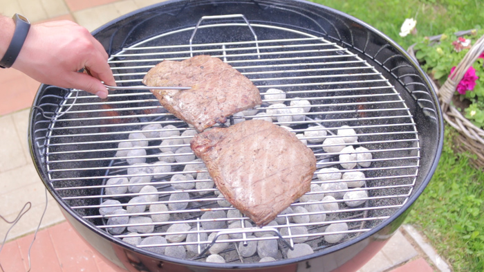 Не один раз меня упрекали по поводу того, что настоящий стейк надо готовить именно на углях, а не на сковороде гриль. Я, разумеется, с этим полностью согласен! Но всё руки никак не доходили записать рецепт. И вот недавно я выбрался на дачу, дел особо не было, погода была отличная и настроение супер! В общем, все звезды сошлись, чтобы пожарить отличные стейки и сделать видео рецепт! Так что теперь я могу представить Вашему вниманию рецепт приготовления фланк стейка прожарки медиум рер (medium rare) маринованного в соусе ворчестер на угольном гриле!