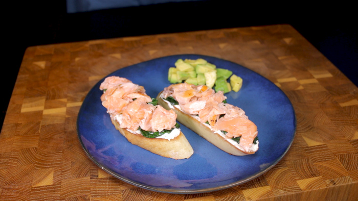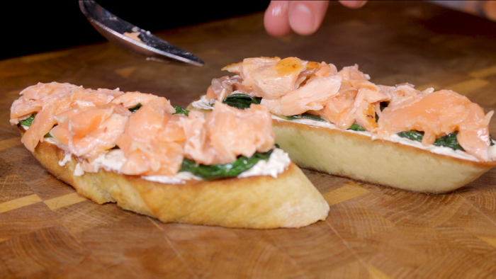 Идеальный завтрак. Брускетта с лососем, творожным сыром и шпинатом